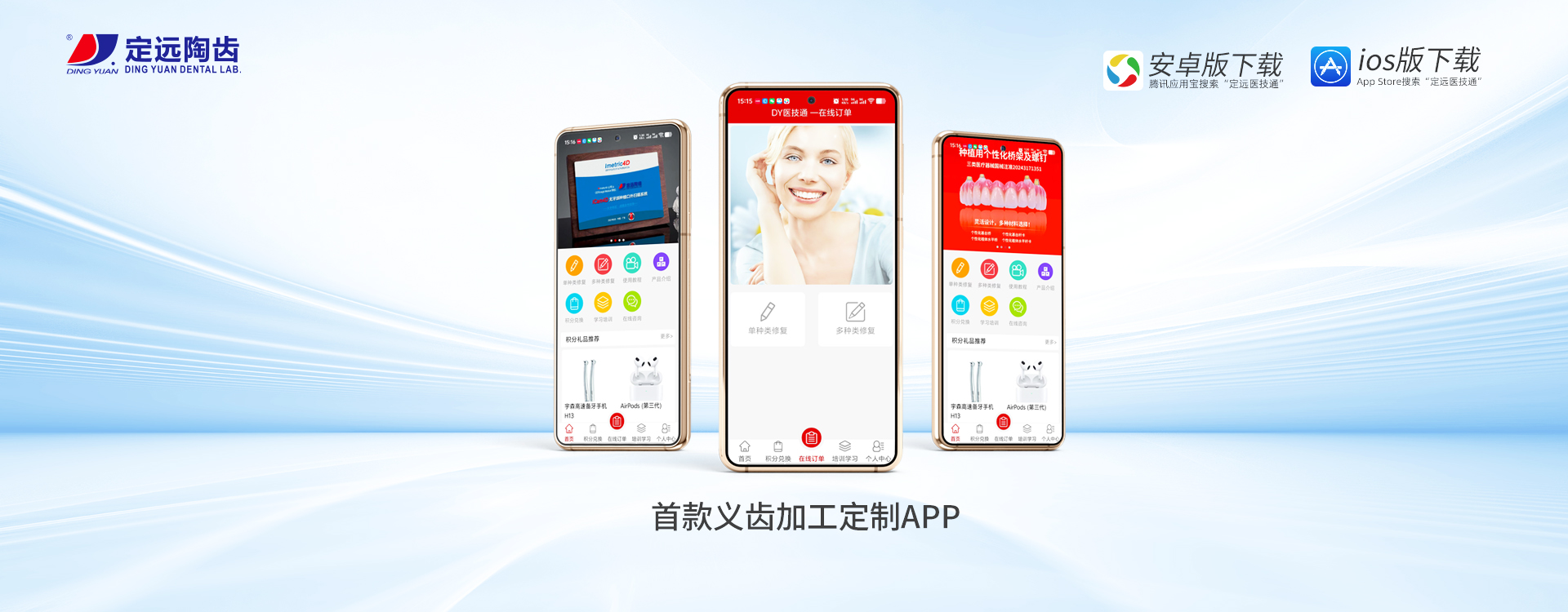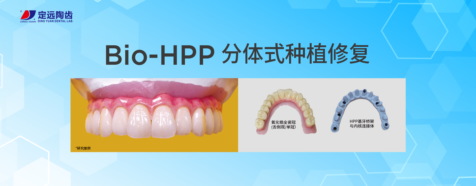 定遠為牙醫提供全面的義齒產品:LAVA、CERCON、微瓷、以及各類品牌氧化鋯全瓷牙,貴金屬瓷牙、SLM激光烤瓷牙、數字化切削純鈦支架、維他靈、BPD支架,以及各種類精密附件、套筒冠、金沉積等,種植上部修復、全口無牙頜種植修復、種植手術導板以及即刻種植修復產品等。